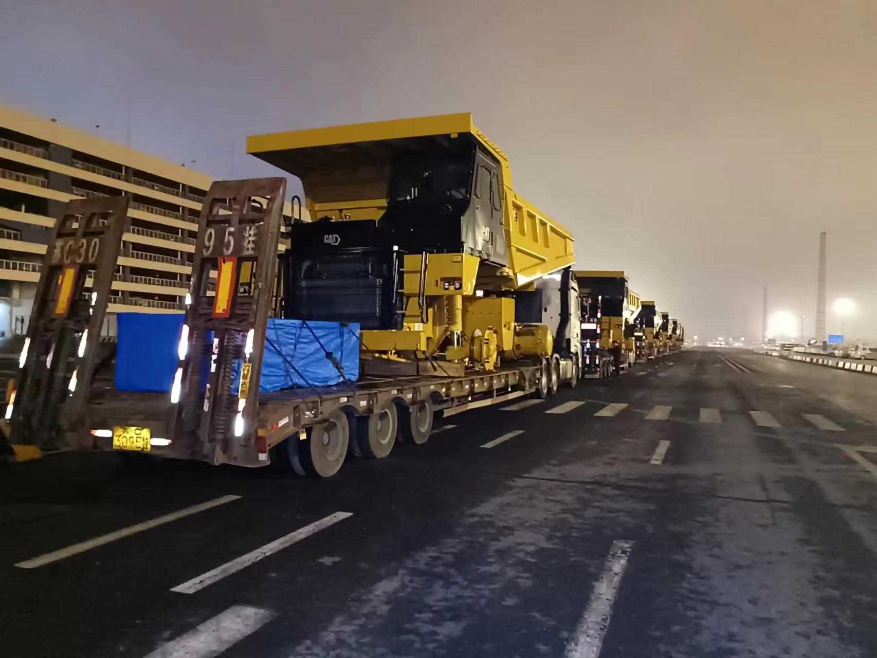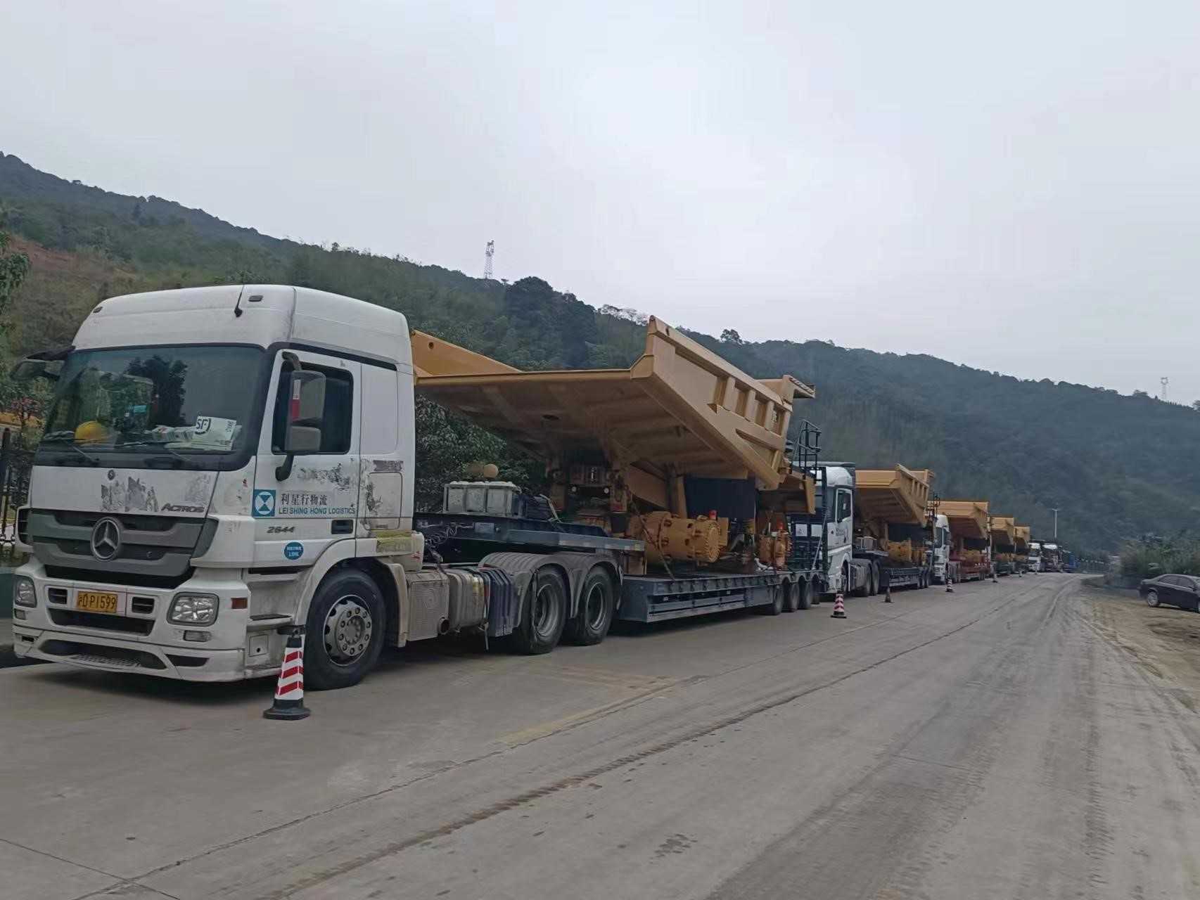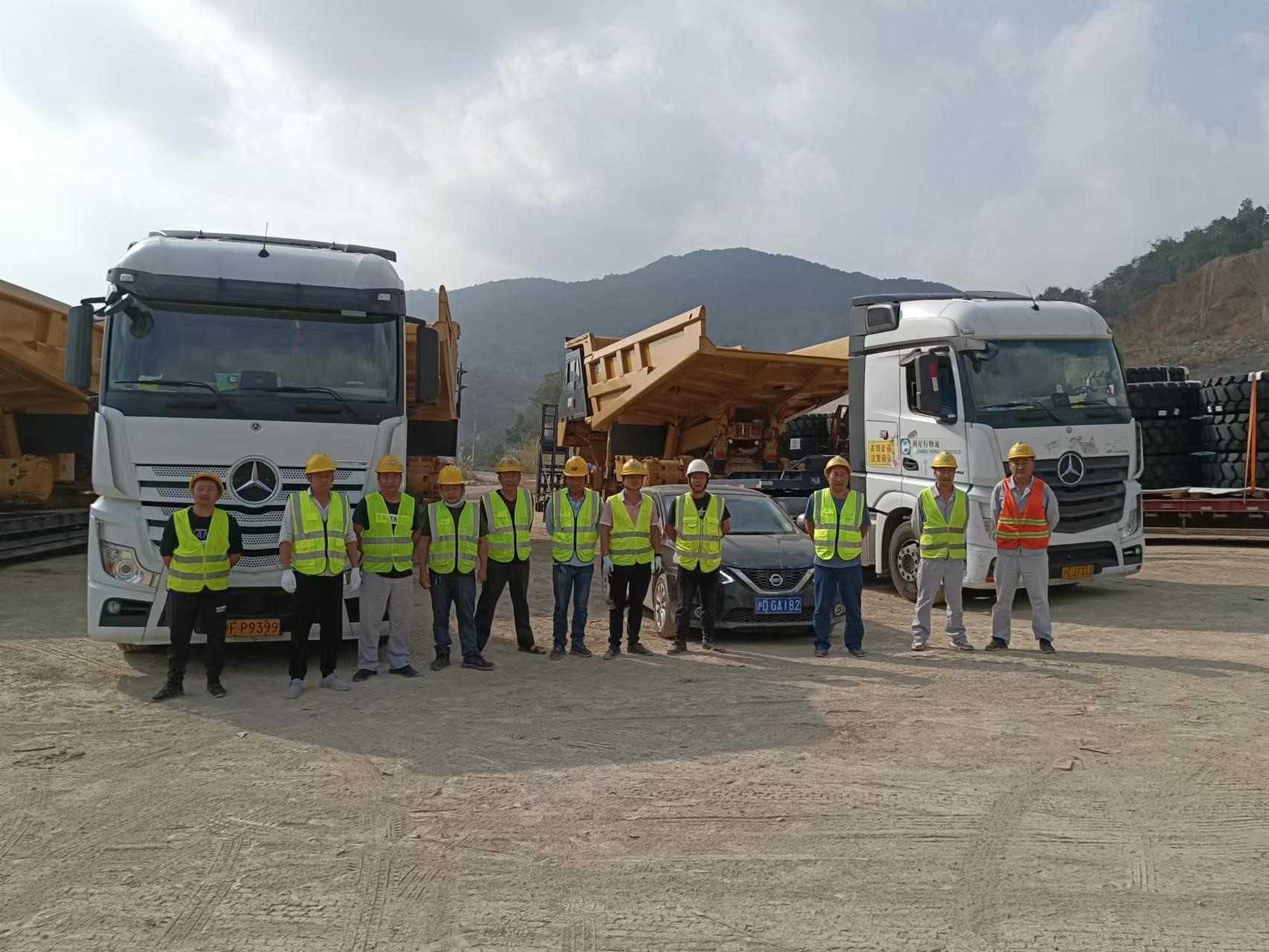 一批次發(fā)運7臺773E礦卡,超限設(shè)備運輸,押運車全程保障;目的地區(qū)域山路多,道路崎嶇,地形復(fù)雜;排除萬難,保證設(shè)備安全到達并如期交付。