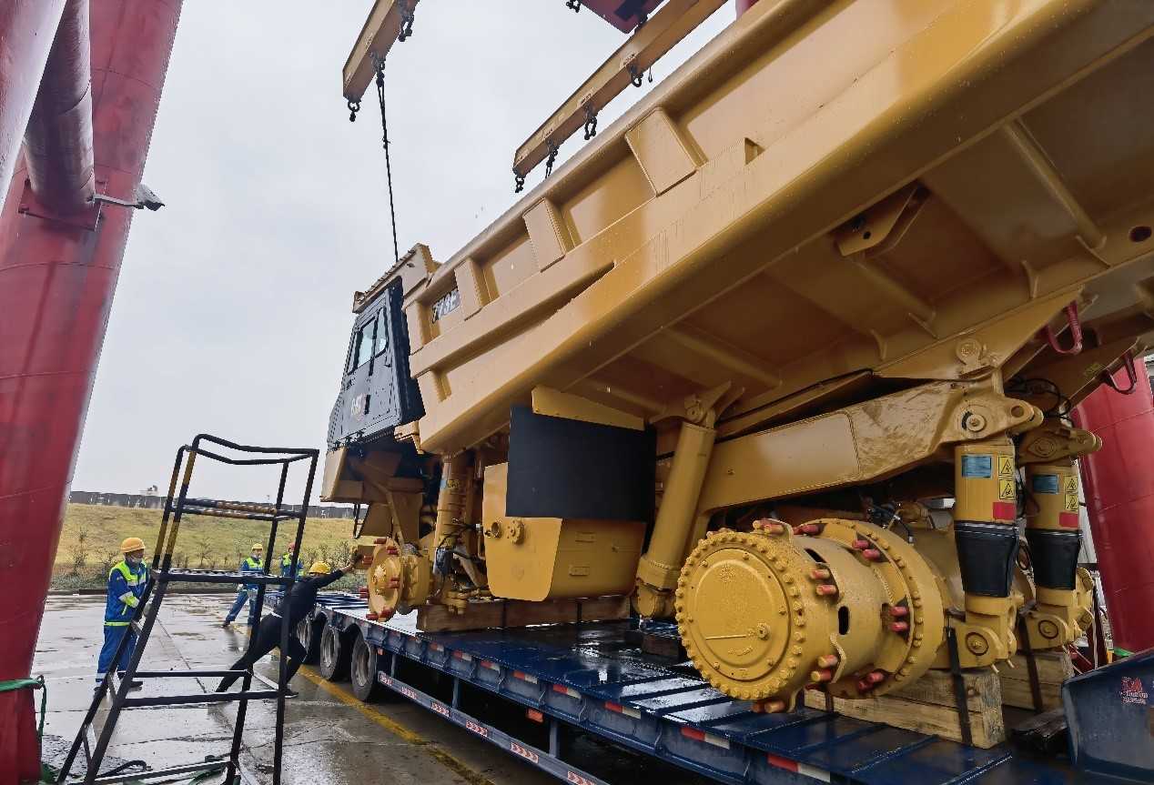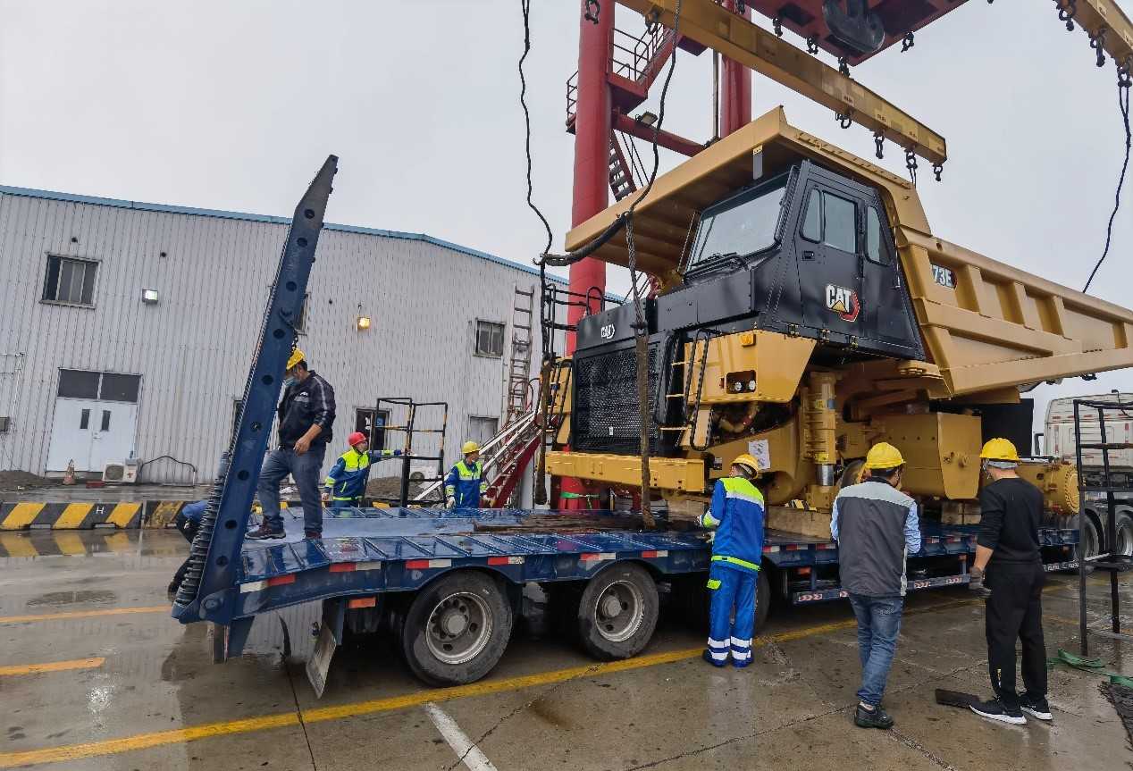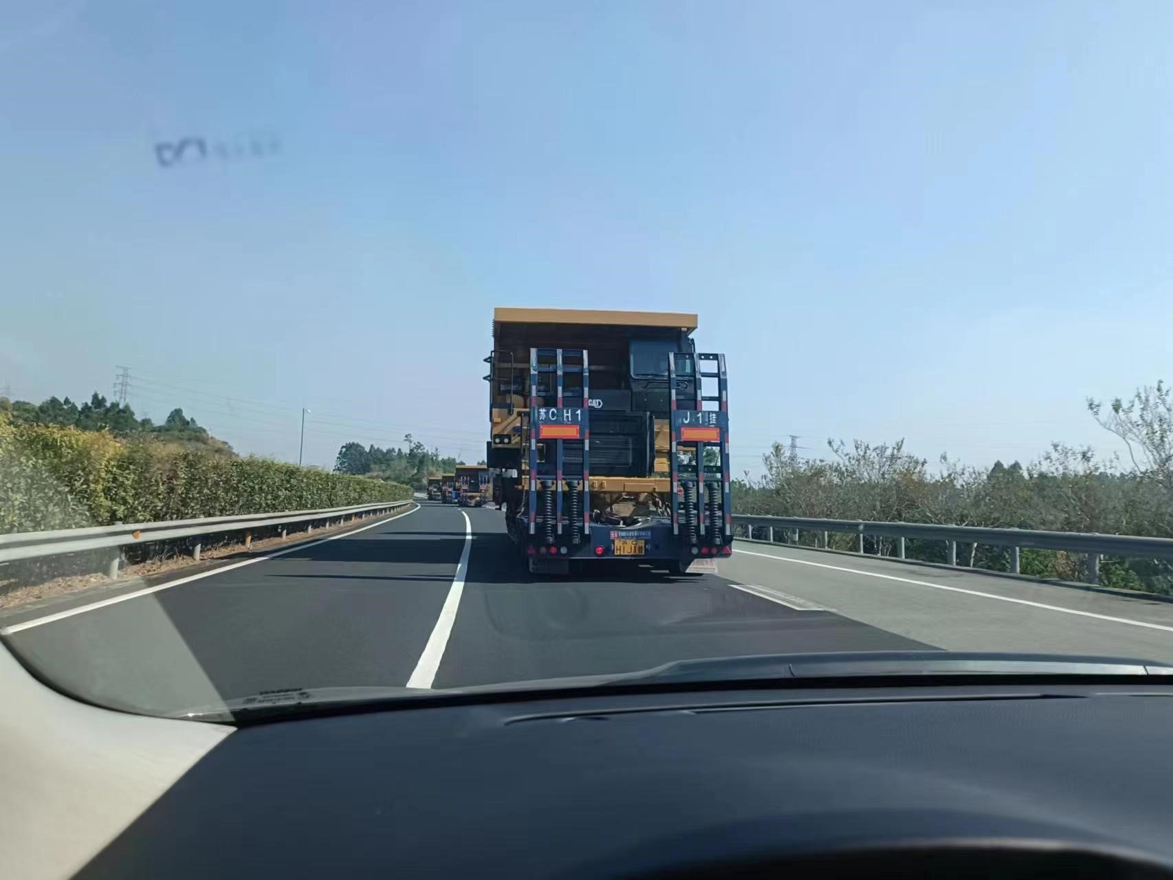 一批次發(fā)運7臺773E礦卡,超限設(shè)備運輸,押運車全程保障;目的地區(qū)域山路多,道路崎嶇,地形復(fù)雜;排除萬難,保證設(shè)備安全到達并如期交付。