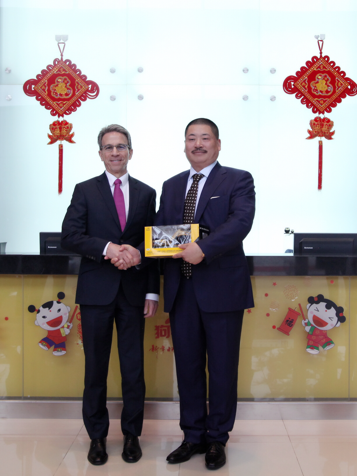 左:卡特彼勒首席執(zhí)行官安博駿;右:客戶劉飛