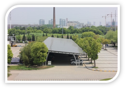 | 水泥房頂: 570個(gè)組件,2個(gè)逆變器,裝機(jī)容量65.55kW | 地面停車棚頂: 2520個(gè)組件,7個(gè)逆變器,裝機(jī)容量289.8kW |