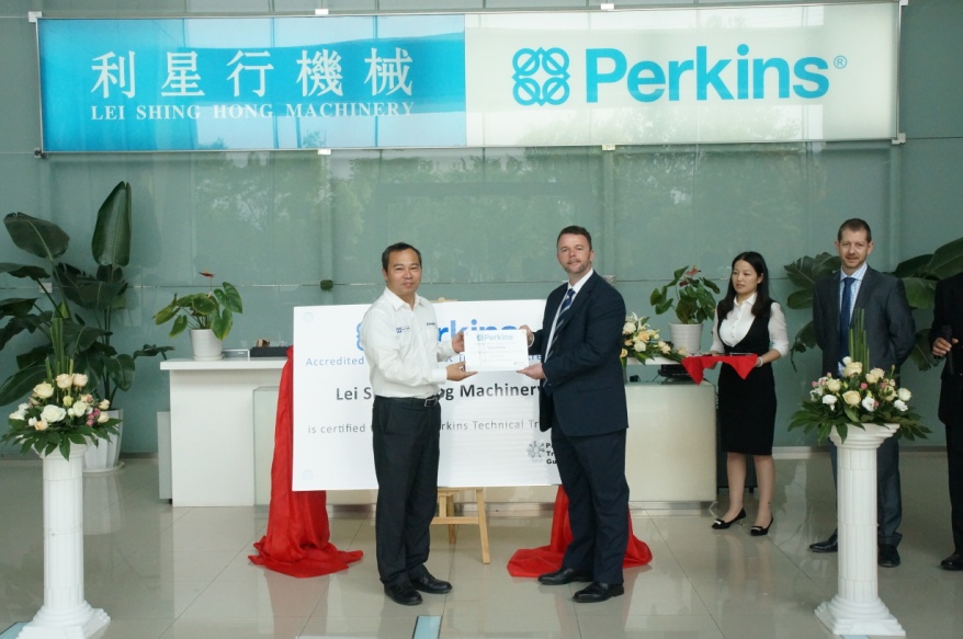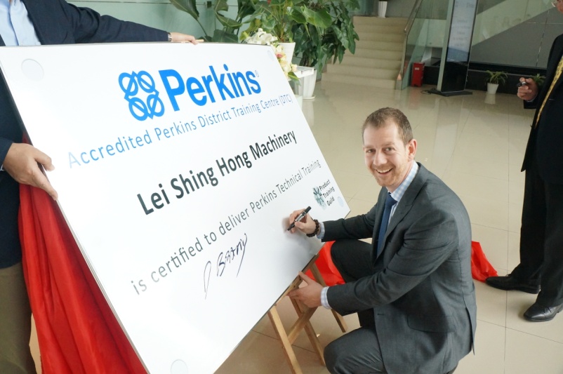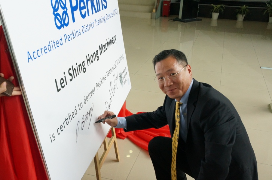 儀式的開始,總經理BENNY WANG先生為儀式做了開場演講,介紹了利星行機械在珀金斯售后支持上做出的努力以及為了提高品牌價值付出的巨大人力和物力投資,培訓中心即是品牌投資的一部分;接下來,英國珀金斯亞太銷售總監DANIEL BENTLEY先生也發言,對BENNY WANG先生的大力支持表示由衷的感謝,也表達了珀金斯選擇利星行機械擔當首家亞太培訓中心這一重要責任的信任;之后,舉行了簡短而隆重的揭牌儀式,為嘉賓們開香檳共同舉杯慶祝利星行機械榮獲此殊榮;最后由珀金斯最資深的培訓專家DAVE BRADY先生為利星行機械兩位授權資格培訓師周萬賓和馮之行老師頒發獎狀。賓客紛紛在揭牌上簽字留念,儀式在祥和的氣氛中圓滿結束。