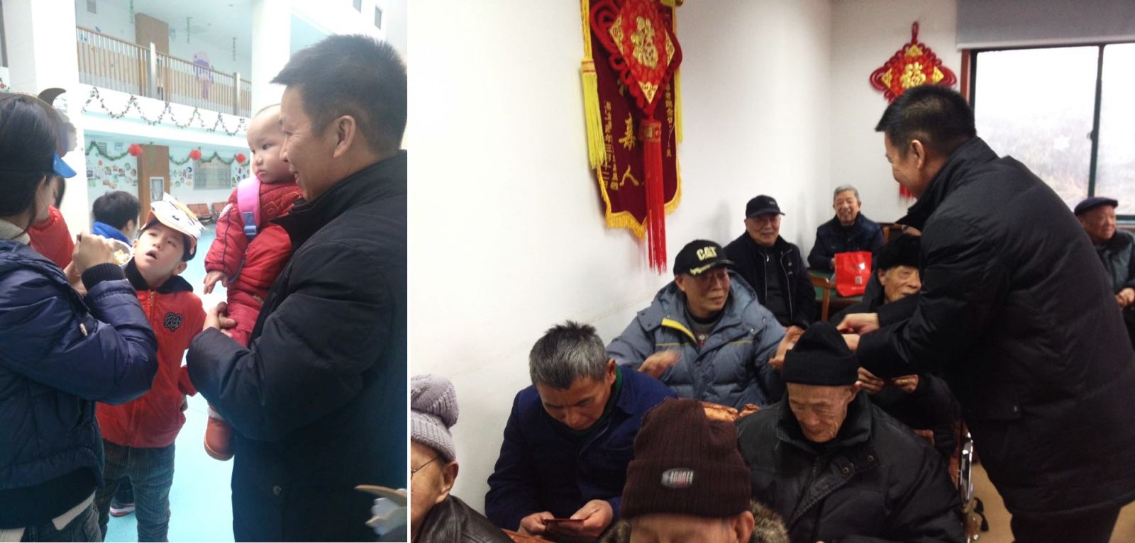 雖然天氣寒冷,下著罕見的小冰雹,新年后的福利院其樂融融,處處張掛著的火紅燈籠和中國結(jié)洋溢著濃濃的年味和春天的氣息,映襯著老人們歡樂的笑臉。利星行機械集團董事長傅先生一如既往,與來自公司各部門的員工同行,親自給老人們送去新年紅包,祝老人們羊年快樂,身體健康!福利院的兒童部更是歡聲笑語一片,孩子們和大家已經(jīng)非常熟悉,他們已經(jīng)習慣每隔3個月就有很多大朋友和他們一起玩耍嬉鬧,給他們溫暖和愛的擁抱。恰逢福利院的幾位小朋友2月份過生日,此次探訪變成一次別開生面的生日會,充滿溫馨和感動。