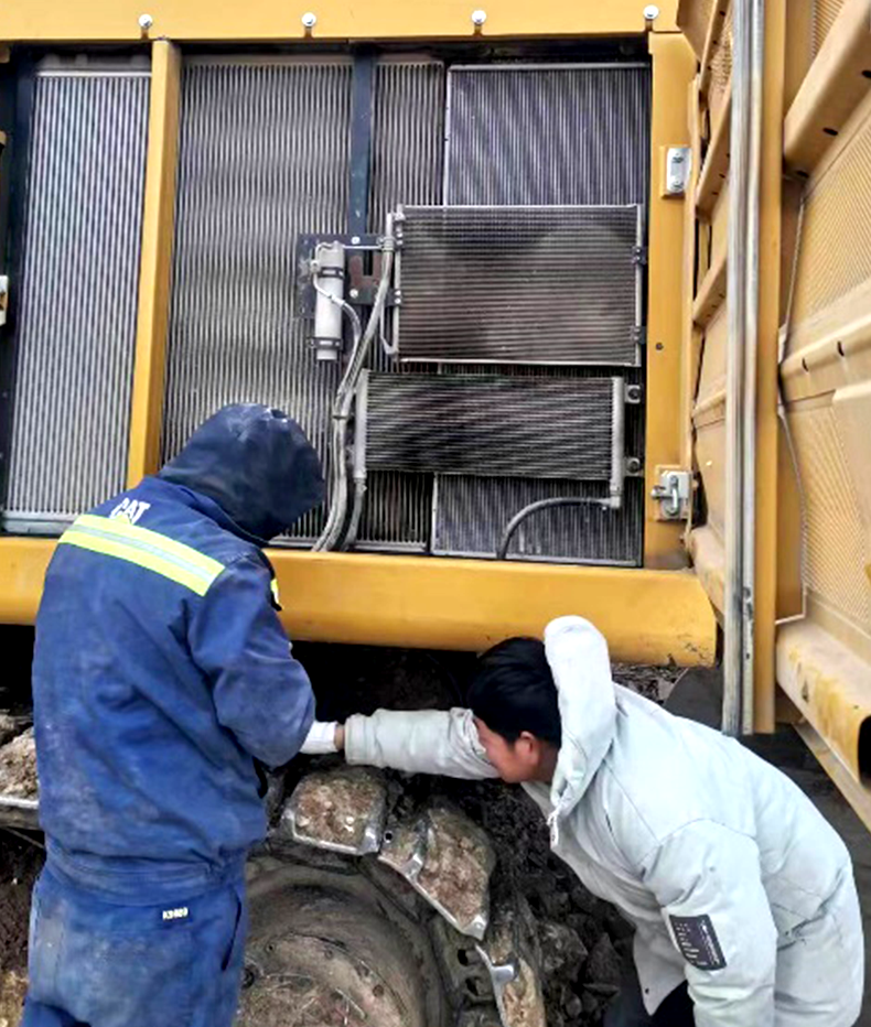 2023年2月初,客戶的工程面臨著工期緊,任務(wù)重且施工環(huán)境復(fù)雜等情況。“屋漏偏逢連夜雨”。一天,客戶的一臺(tái)Cat 349在施工時(shí)水箱被意外撞壞,需要更換。接到客戶的緊急報(bào)修電話,利星行機(jī)械售后服務(wù)團(tuán)隊(duì)立即研判決策,考慮到路途遙遠(yuǎn)的因素,決定讓服務(wù)人員攜帶配件,連夜坐車,歷經(jīng)兩天兩夜趕到現(xiàn)場,第一時(shí)間幫助客戶解決了問題,沒有耽誤客戶的工期進(jìn)度。
